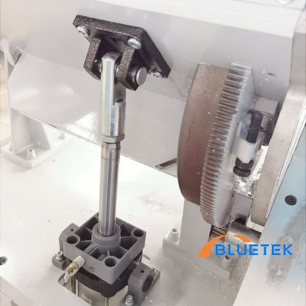 Two heads of double heads pvc cutting machine are equipped with a lubricating spray system, especially when cutting aluminum, spraying coolant to the saw blade can significantly improve the cutting quality of the profile section and prolong the service life of the saw blade.
